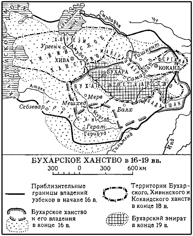 Шейбаниды считали, что именно они являются законными наследниками Тимуридов, и вели постоянную борьбу с Сефевидами за Хорасан и вторую столицу Тимуридов — Герат. Для правления Абдуллы-хана II (1557—1598) было характерно укрепление ханской власти. Он заботился о процветании своего народа. За время сорокалетнего правления хан построил множество учебных заведений, мечетей, бань, караван-сараев и мостов, развел тенистые сады в главных городах ханства, устроил почтовое сообщение. И, вообще, был усердным покровителем земледелия, торговли, поэзии, литературы и науки. Правление Шейбанидов ознаменовалось также постепенным обособлением восточно-исламского мира от западного и возвышением влияния ученых мулл, вследствие чего богословие заняло в медресе Бухары главное место.