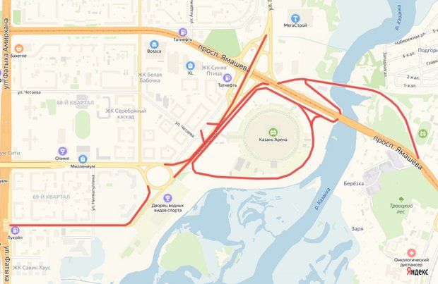 В дни чемпионата по Казани в определенные часы свободно проехать можно будет не по всем улицам. Ограничение движения транспортных средств вводится по улице Хакима от проспекта Амирхана до улицы Чистопольской, на Чистопольской от Хакима до Ямашева, на выезде на ул. Чистопольскую с внутриквартальных проездов в районе домов 79 и 85а по Чистопольской, а также на объездной дороге вокруг стадиона «Казань Арена» и разворотной петле под 3-й транспортной дамбой: