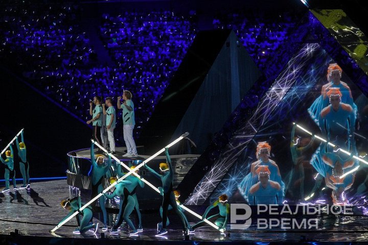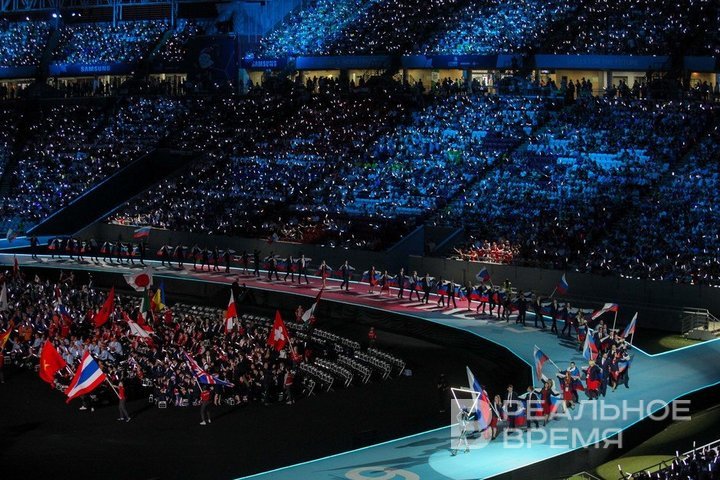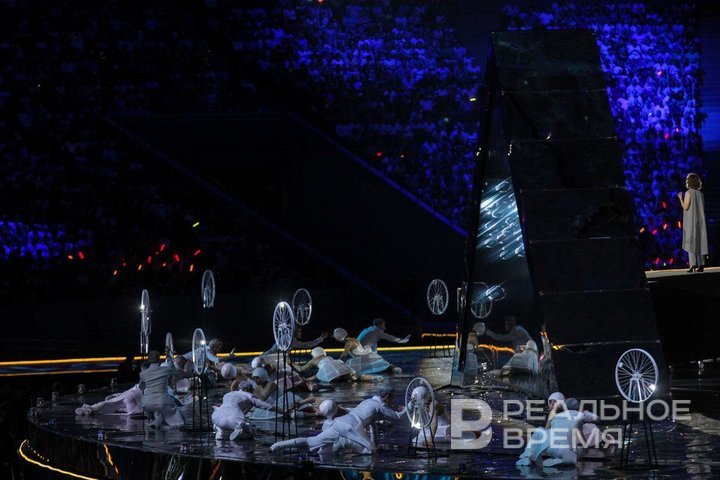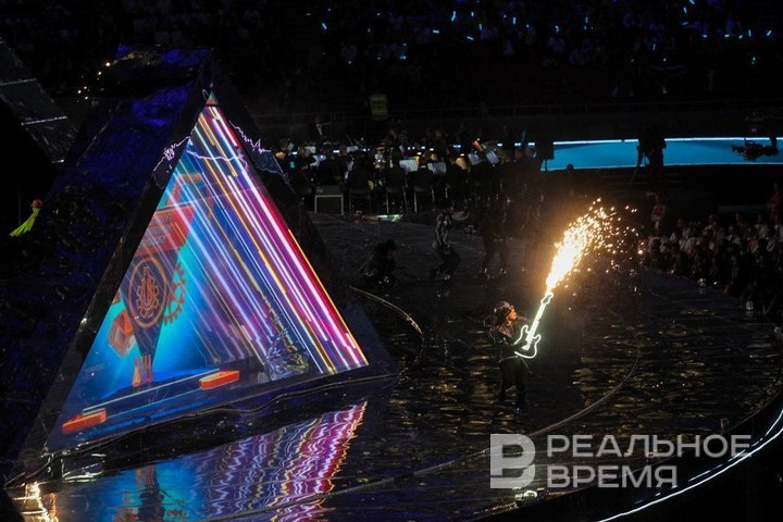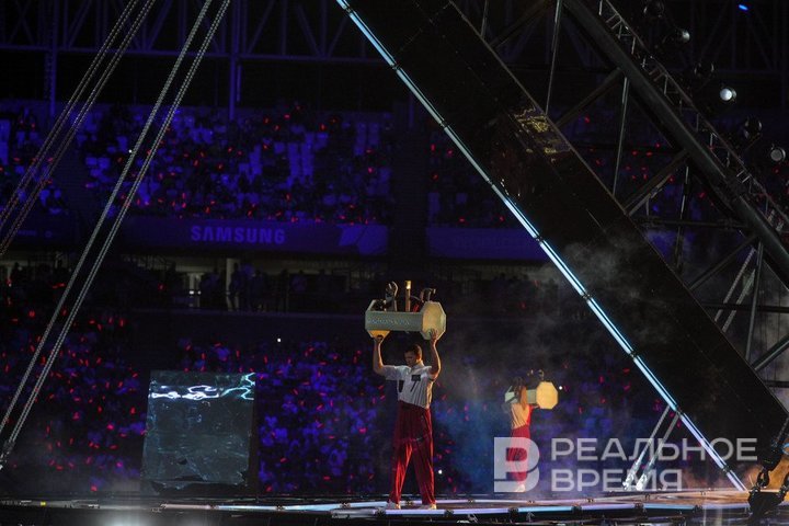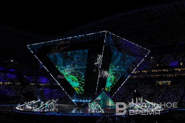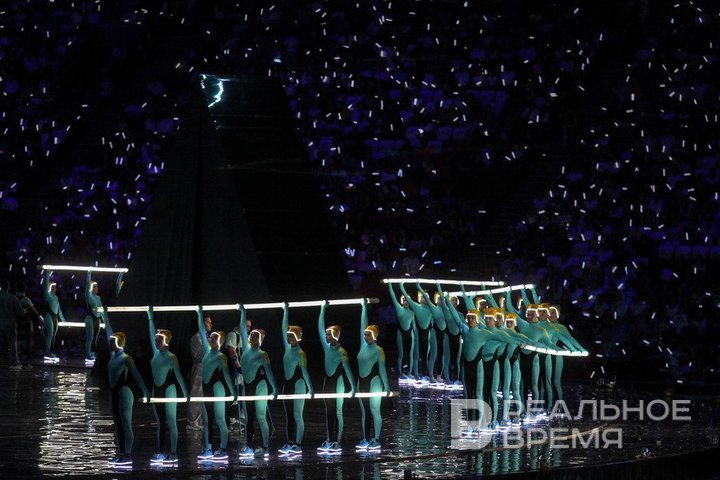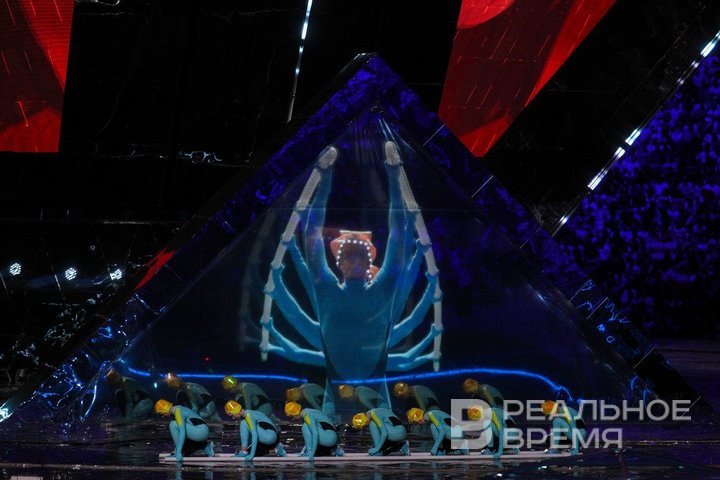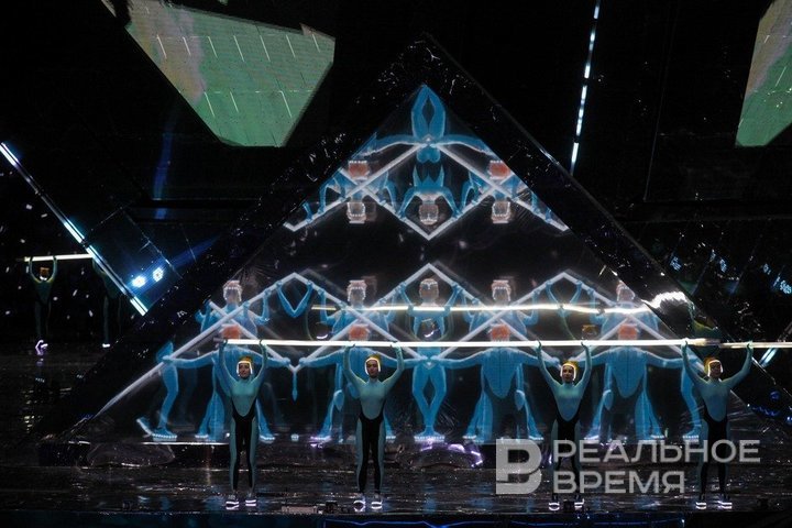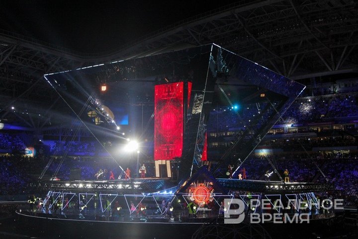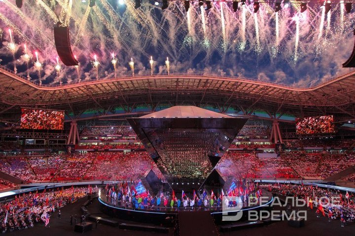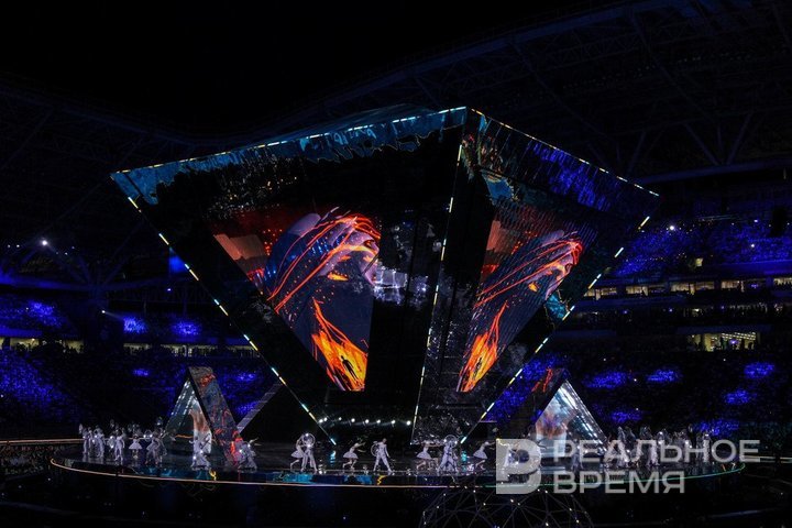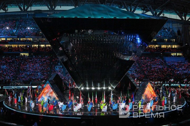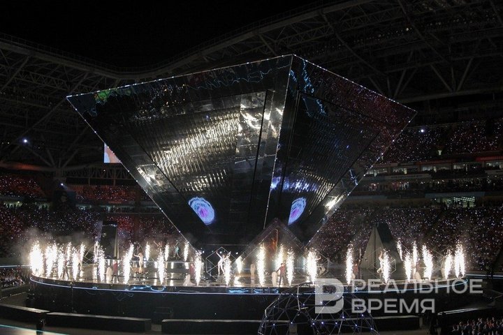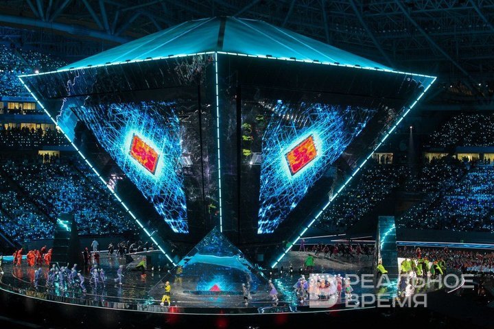 Трибуны «Казань Арены» начали заполняться за час до церемонии. Стадион встречал зрителей гигантской перевернутой пирамидой, основание которой уходило в небо. Подробности о грандиозном шоу — в репортаже «Реального времени».