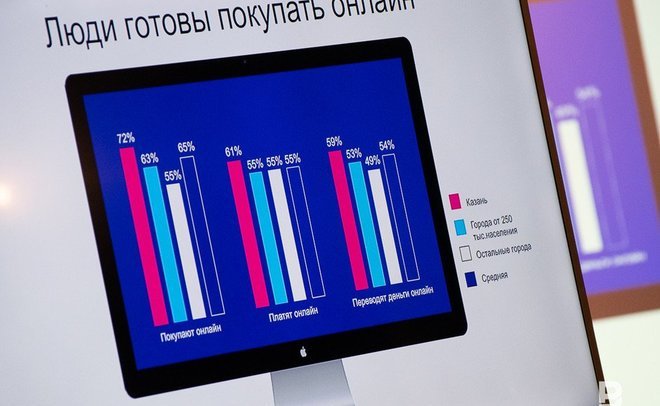Доля интернет-сегмента в совокупном обороте розничной торговли в Татарстане составляет 1,3%, тогда как в среднем по России эта цифра неожиданно выше — 1,7%. По словам министра экономики Татарстана Фарида Абдулганиева, республика должна догнать и перегнать страновой уровень за счет реализации потенциала. «Мы должны превосходить российский показатель — должны создать условия для этого. В этом функция исполнительных органов государственной власти», — отметил он.