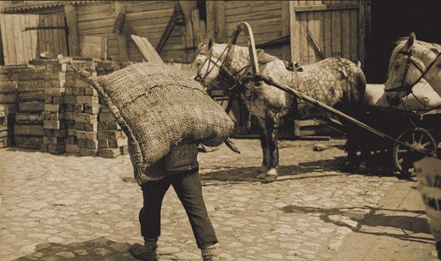 К концу позапрошлого столетия эта система была уже доведена до совершенства, что называется, отработана и обкатана. Муку различных сортов фасовали в основном в холщовые или брезентовые мешки: хранить ее в изделиях из грубого рогожного материала было совершенно недопустимо — товар бы непременно просыпался. Сахарный песок хранили только в наглухо закупоренных деревянных бочках — он легко впитывал влагу. Все же прочие сыпучие продукты перевозили и складировали исключительно в стандартных мочальных кулях. Вот как описывает положение дел на продовольственном рынке Казани по состоянию на 31 июля 1892 года газета «Волжский вестник» — тут как раз и про кули, и про мешки, и про бочки: