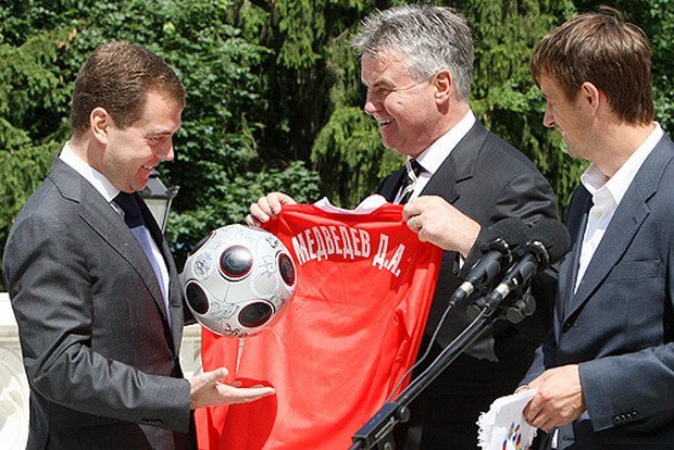 Набережные Челны, Сочи, еще какие-то, сомнительные с точки зрения развития национального футбола, города Хиддинк посещал в качестве свадебного генерала, в которого превратился сразу же, как завоевал «бронзу» на Евро-2008. Сделав это в своем стиле, «галопом по Европам», с проигранным в конце турнира матчем. На этот раз это была пощечина от Испании — 0:3. Да, до этого разгрома были победы над Грецией, Швецией и Голландией, но российская команда стала автором сомнительного антирекорда, когда призер чемпионата финишировал с отрицательной разницей забитых и пропущенных мячей — 7:8. И это была сборная, на две трети состоявшая из обладателей Кубка УЕФА в составе ЦСКА и «Зенита», чьи игроки в клубах побеждали «Баварию», «Байер», «Манчестер Юнайтед»…