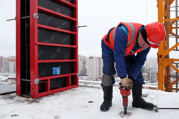 — Мы приняли объект в незаконсервированном виде. Блок-секции «А» готовы на 60—70%. То есть на сегодняшний день стоит только каркас и ограждающие конструкции, больше ничего — нет ни инженерии, ни самих квартир, — рассказал «Реальному времени» руководитель проектов КОМОССТРОЙ® в Казани Денис Чайников. — Наша задача — подготовить блок «А» к сдаче. Для этого мы должны вначале возвести весь монолитный каркас секции «Б» и ограждающие конструкции — стены, окна, витражи на 18 этажей. Сейчас же у блок-секции «Б» есть лишь каркас до седьмого этажа. С этих работ мы и начали.