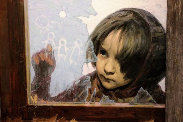 Как бы в подтверждение связи и понимания прошлого-настоящего-будущего, Рустем Хузин трогательно и пронзительно касается темы недавних событий, Великой Отечественной войны. Трудно удержаться от слез или горестного вздоха, глядя, как на картине «Пусть всегда будет солнце» ребенок рисует солнышко на разбитом, затянутом инеем стекле, рассматривая свой рисунок совсем взрослыми глазами, или на старушку-мать, вышедшую на дорогу встречать сына, который обещал вернуться…