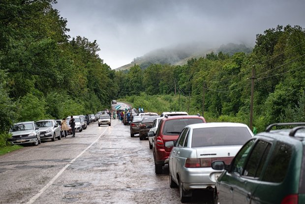 Через некоторое время к горе съехались люди из разных городов на подмогу тем, кого заблокировали в лесу. Мужчины пытались прорваться к лагерю, но у шлагбаума им препятствовал ЧОП и люди с белыми повязками. Нападавшие провоцировали, завязывались драки. Прибывшие через несколько часов сотрудники полиции вмешались только тогда, когда поняли, что очередная драка может закончиться плачевно.