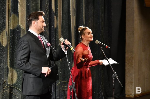 Первыми в новом сезоне на сцену большого зала театра поднялись заслуженные артисты Татарстана Алсу Каюмова и Фанис Зиганшин. Они коротко посвятили зрителей в планы на предстоящий театральный год, рассказали о планах на сезон, а также вручили ВИП-абонемент победителю конкурса #Төятергәкиттек Гузель Хайрутдиновой и постоянным зрителям Алисе Хусаиновой и Марьям Ибрагимовой. Такой подарок для самого активного зрителя предоставляет два лучших места на все премьеры сезона — а их в этот раз ожидается целых три. Как рассказали ведущие, состязавшиеся за билеты участники должны были снять то, как они добираются до театра, и выложить видео с соответствующим хештегом в соцсети. «На конкурс поступило очень много работ — зрители плыли к нам через Кабан, приезжали на тракторе, электричке, кто-то приходил пешком», — заключили артисты под аплодисменты первых посетителей театра нового сезона.