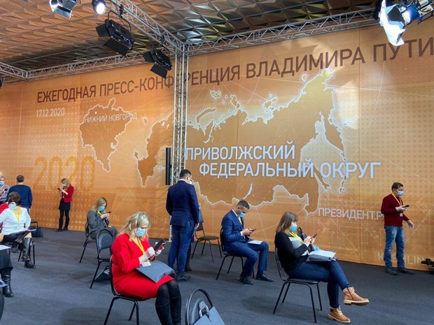 Каждый город, от которых работали журналисты, вышел на связь с президентом максимум два раза. Исключение составила Москва, где дали слово двум иностранным представителям СМИ и нескольким федеральным, а также резиденция Ново-Огарево, где рядом с президентом сидел Кремлевский пул, и call-центр, где обращения граждан зачитывали волонтеры. Песков подключал каждую площадку по очереди, и когда она дошла до Нижнего Новгорода, то модератор выбрал вопрос журналиста из Мордовии про онлайн-образование. В следующий раз пресс-секретарь президента обратил внимание на журналистов из ПФО только через 2 часа. На этот раз выбор пал на журналистку из Пензы, она спросила про индексацию пенсии работающим пенсионерам. Обоим журналистам на память оставили ветрозащиту для микрофона с надписью «президент РФ», так как волонтеры их постоянно меняли.