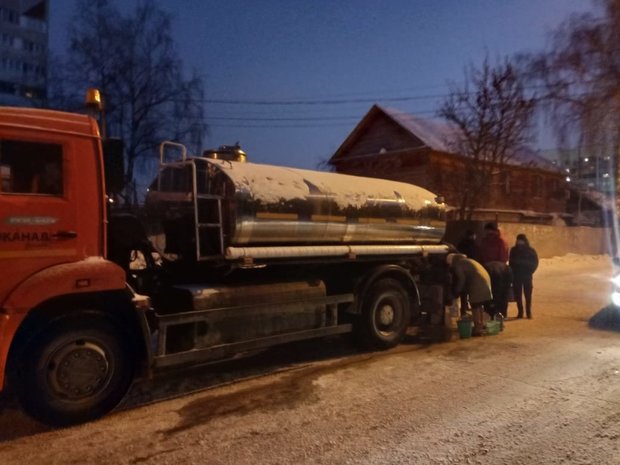 Около 17.00 прибывший в район аварии корреспондент издания застал служебный КАМАЗ с большой изотермой для воды. Он стоял на внутриквартальной улице Лукина, 10, между двумя «обезвоженными» домами. На задней части фуры были прикреплены три крана. Открываешь — наливаешь. К нему прибежали жители, чьи окна выходили на эту улицу, — специально их не оповещали. Кто увидел, тот пришел. Очередей не было. Возможно, и потому, что еще утром жители успели запастись водой из магазинов.