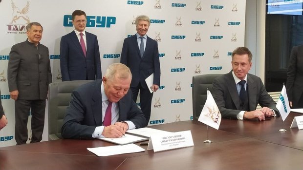 - В присутствии вице-премьера России Александра Новака, президента Татарстана Рустама Минниханова, председателя совета директоров АО «ТАИФ» Альберта Шигабутдинова, генерального директора АО «ТАИФ» Руслана Шигабутдинова, председателя правления ПАО «НОВАТЭК» Леонида Михельсона, председателя правления ПАО «СИБУР Холдинг» Дмитрия Конова было официально озвучено, что в рамках объединения на базе ПАО «СИБУР Холдинг» будет создана компания, в которой действующие акционеры АО «ТАИФ» получат долю в размере 15% в обмен на передачу контрольного пакета акций группы, состоящей из нефтехимических и энергетических предприятий. Оставшийся пакет акций АО «ТАИФ» может быть впоследствии выкуплен объединенной компанией.