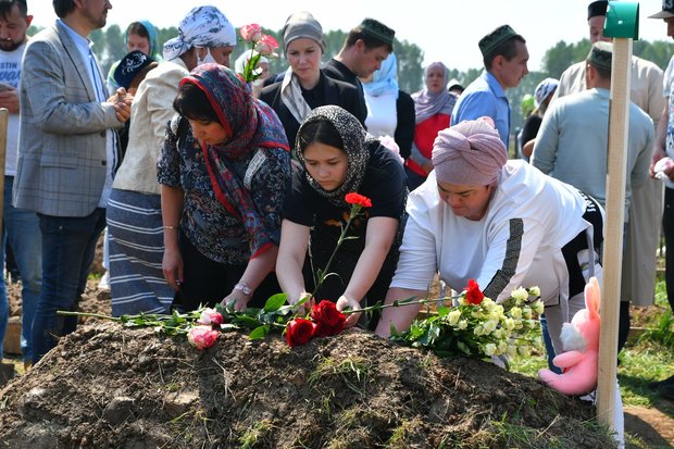 Похороны первых погибших детей проходили на территории 12-й аллеи мусульманской части Самосыровского кладбища по традициям ислама. Согласно им, похороны проводят обычно в день смерти либо на следующий, чтобы как можно быстрее предать тело земле.