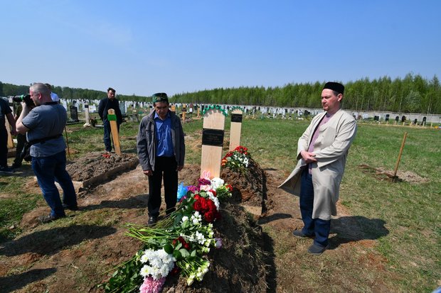 Первыми хоронили 15-летних Эмира Шайхетдинова и Ильзию Нагимуллину, которые учились в одной школе и были дальними родственниками. Проститься с ними приехали несколько семей из Буинского района Татарстана и даже из Узбекистана. Отец Ильзии в желтой футболке после засыпания могилы слушал суру из Корана вместе с 10-летним племянником, а после завершения чтения раздавал садака пятидесятирублевыми купюрами. У него осталось два сына.