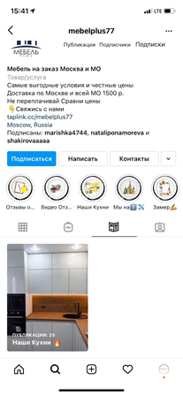 БИО. В вашем БИО указано, какую именно мебель вы изготавливаете. Эту информацию лучше отразить в актуальных и в taplink. Этот этап оформления аккаунта очень важен, лучше отразите в описании ваши преимущества, чем вы отличаетесь от конкурентов. Также можно привлечь внимание действующей акцией или скидкой.