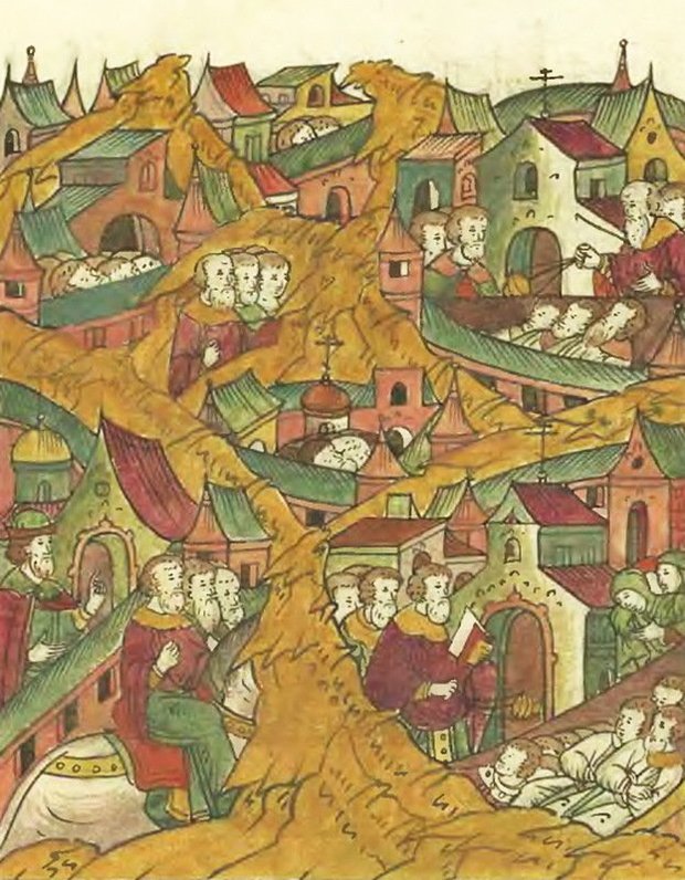 В 1346 г. чума появилась в низовьях Дона и Волги, опустошив столицу золотоордынских ханов и близлежащие города. Летописный свод 1497 г. в записи за 6854 год от сотворения мира (1346 г. от рождества Христова) содержит сведения о сильном море: