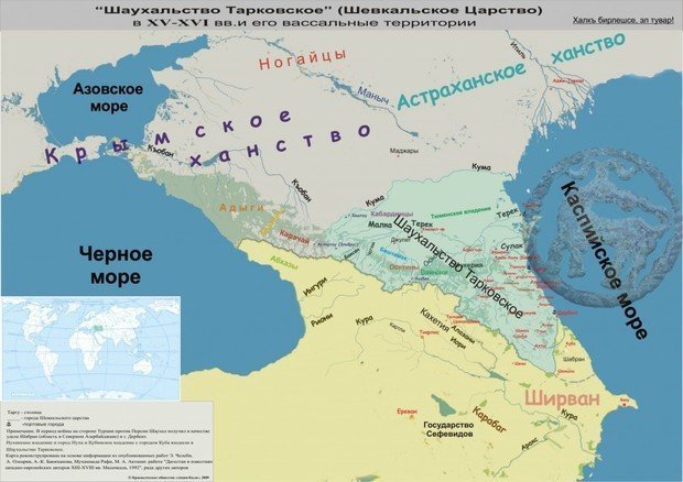 Шамхальство в годы расцвета занимало территорию от Каспийского моря до современной Кабардино-Балкарии. К началу XVI в. его столица находилась в городе Тарки на территории современной Махачкалы.