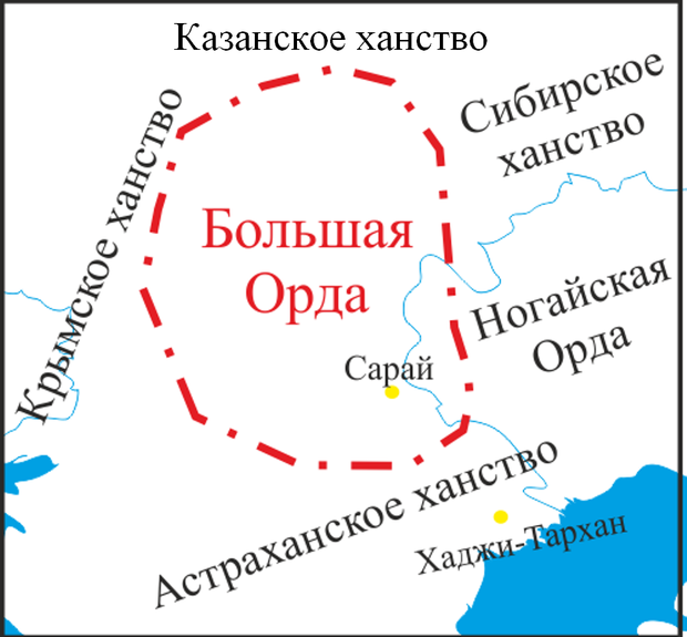 После того как Казанское, Крымское, Сибирское ханства и Ногайская Орда получили самостоятельность, на политической карте появилась еще и Большая Орда. Ее территория включала земли между Доном и Волгой, Нижнее Поволжье и степи Северного Кавказа. Столицей был город Сарай-Берке.
