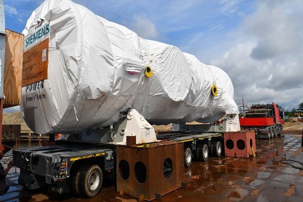7 июня в Гамбурге генераторы, паровую и газовую турбины погрузили на специальную баржу, которая по воде через Санкт-Петербург 17 июля доставила груз в Казань. Вес газовой турбины в сборе составляет 198 тонн, вес генератора в сборе — 221 тонна.