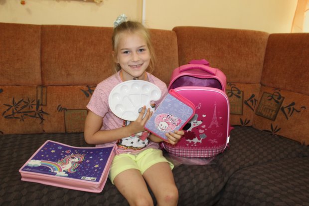 — Так много всего в портфеле, все такое красочное и яркое, мне очень нравится. Не терпится показать все своим одноклассникам, — радуется подарку семилетняя Лилиана.