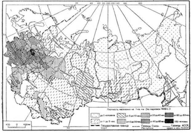 В СССР живет свыше 193 млн человек. По количеству населения Советский Союз стоит на третьем месте в мире после Китая и Индии. За годы 1926—1939 естественный прирост населения СССР составил 23,4 млн человек, т. е. почти 16%; за тот же период численность населения США выросла на 11%, Германии — на 7%, Франции — на 2,7%.