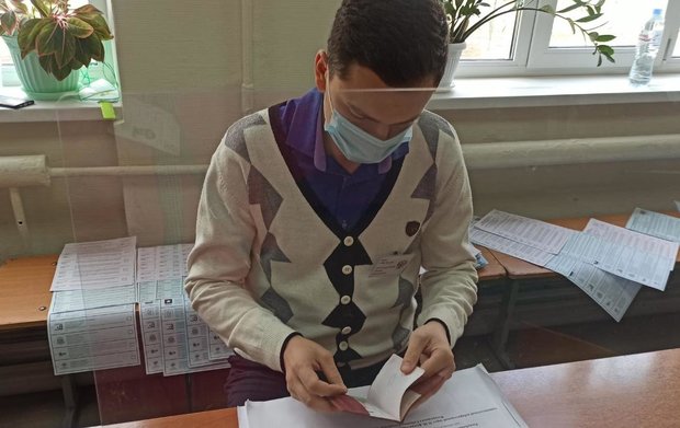 За безопасностью участков в здании школы следит сотрудник полиции. Соблюдаются и антиковидные меры — регулярно моют полы, после 20.00 участок обрабатывают сотрудники санэпидстанции. Каждому избирателю на входе выдают одноразовые перчатки, маску и шариковую ручку. А для безопасности каждого участника выборов столы членов УИКа оборудовали защитным экраном.
