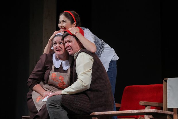 Все это, разумеется, играется с преувеличенными эмоциями, заламыванием рук и чуть ли не с истериками. Но смешно. И без провисания темпоритма, лишних философствований, диалогов и монологов. Порой настолько прямолинейно, что смех не угасает несколько минут — к примеру, когда подруга Дилюса Насима (Диляра Фаттахова) врывается в одной из сцен с диким криком, дед Азват восклицает: кажется, за мной пришли! В остальном — дань традиции.
