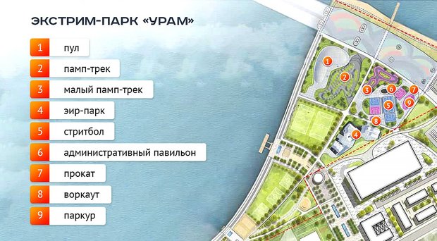 Этот проект разрабатывали в полном соответствии с пожеланиями любителей экстремальных видов спорта в Казани: им не навязывали чужую точку зрения, с ними постоянно консультировались. В проектировании и строительстве экстрим-парка «УРАМ» принимали участие более ста строителей-спортсменов со всей России — от Читы до Санкт-Петербурга. И получился проект, который полностью удовлетворяет всем потребностям уличного сообщества.