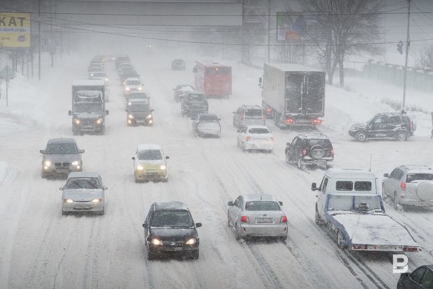 - С самого утра в Казани из-за выпавшего за ночь снега образовались пробки на дорогах. Непогода прогнозируется и на завтра: синоптики обещают туман с ухудшением видимости до 500 метров и сильную гололедицу.