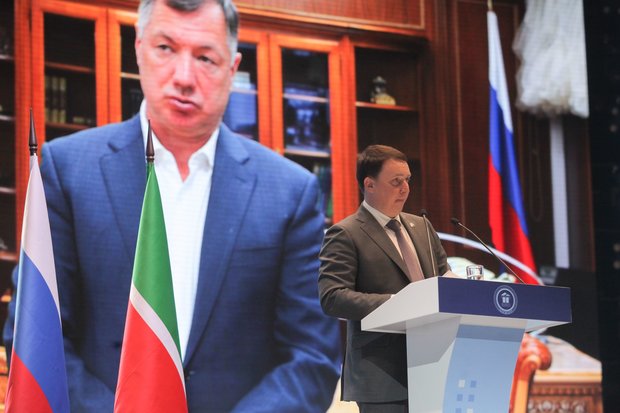 А вот российский вице-премьер и в прошлом министр строительства республики Марат Хуснуллин приехать не смог и поздравил коллег в видеообращении. Он рассказал залу, что «Минниханов любит стройку» и по этой причине «всегда есть новые идеи», что нужно еще построить. «У нас все связано со стройкой», — завершил он выступление, добавив, что Татарстан снова стал лидером по темпам строительства, побив советский рекорд в 3 млн кв. м жилья по итогам 2020 года.