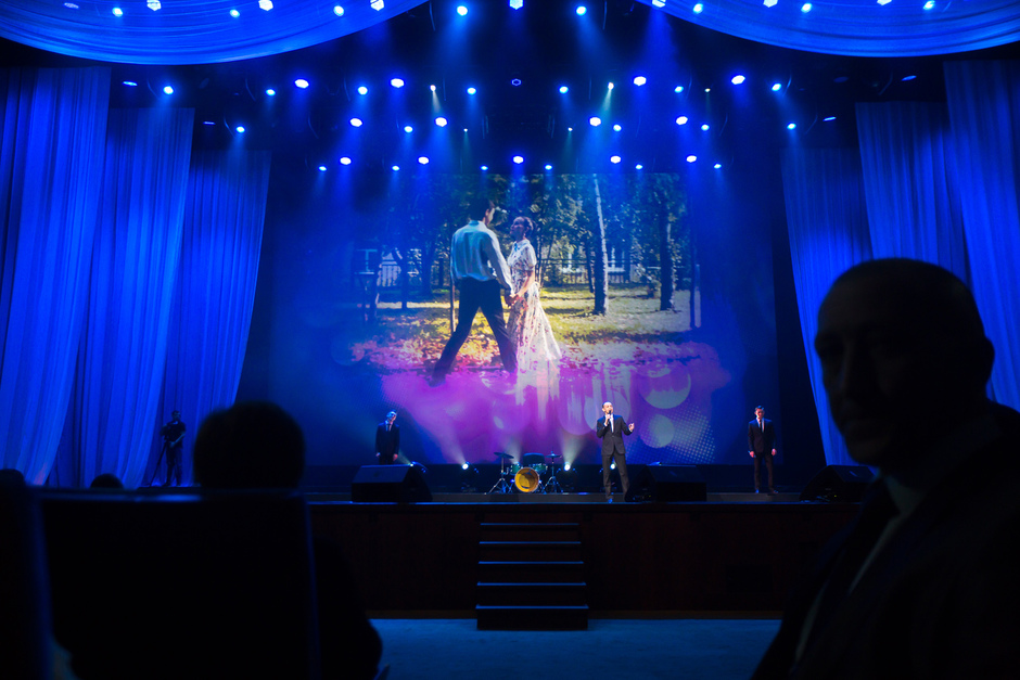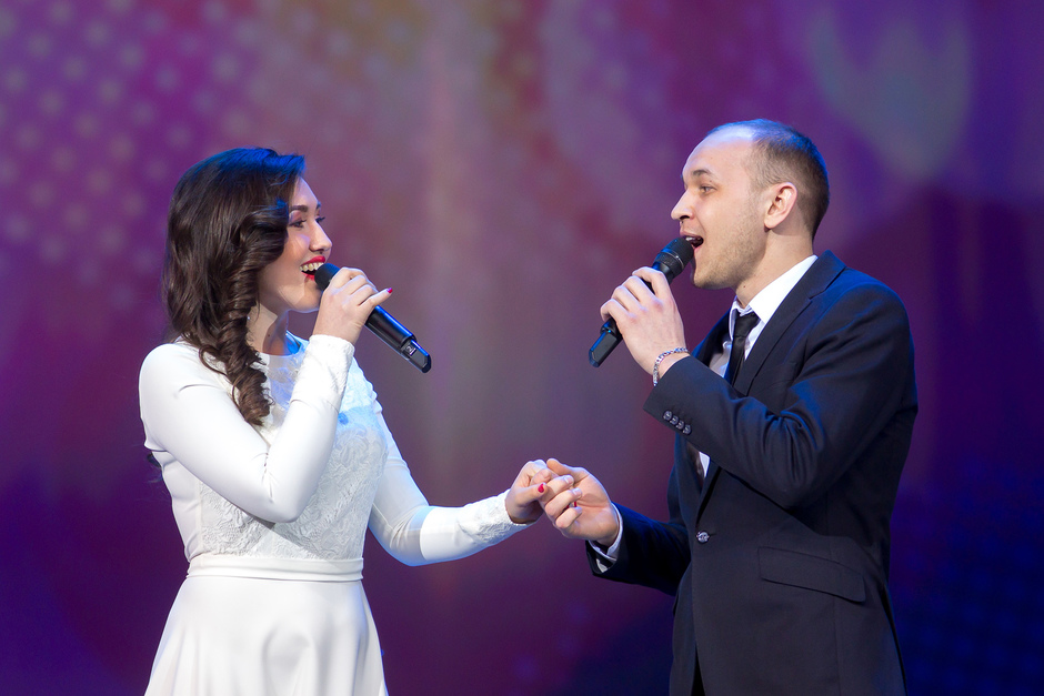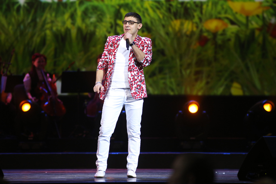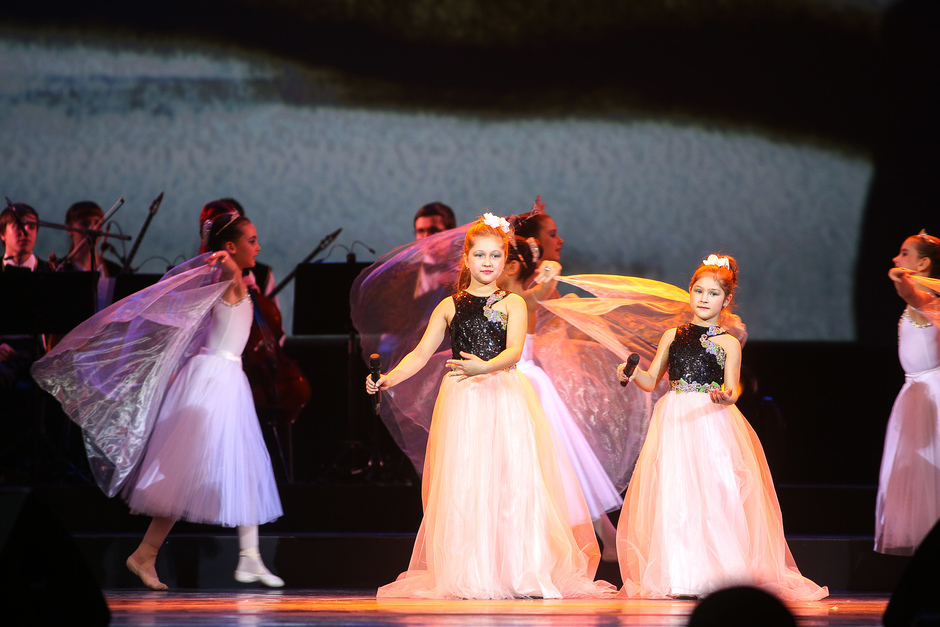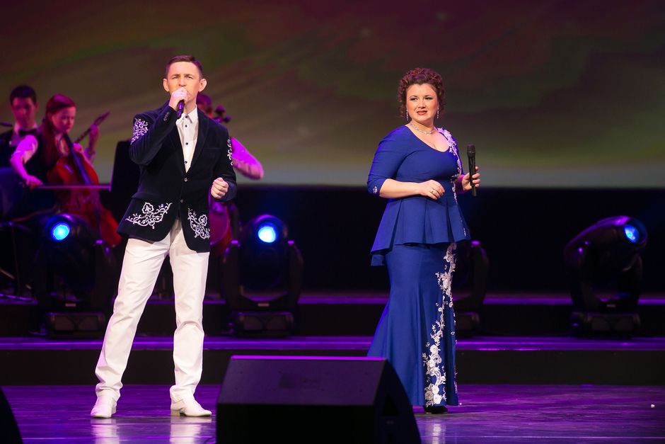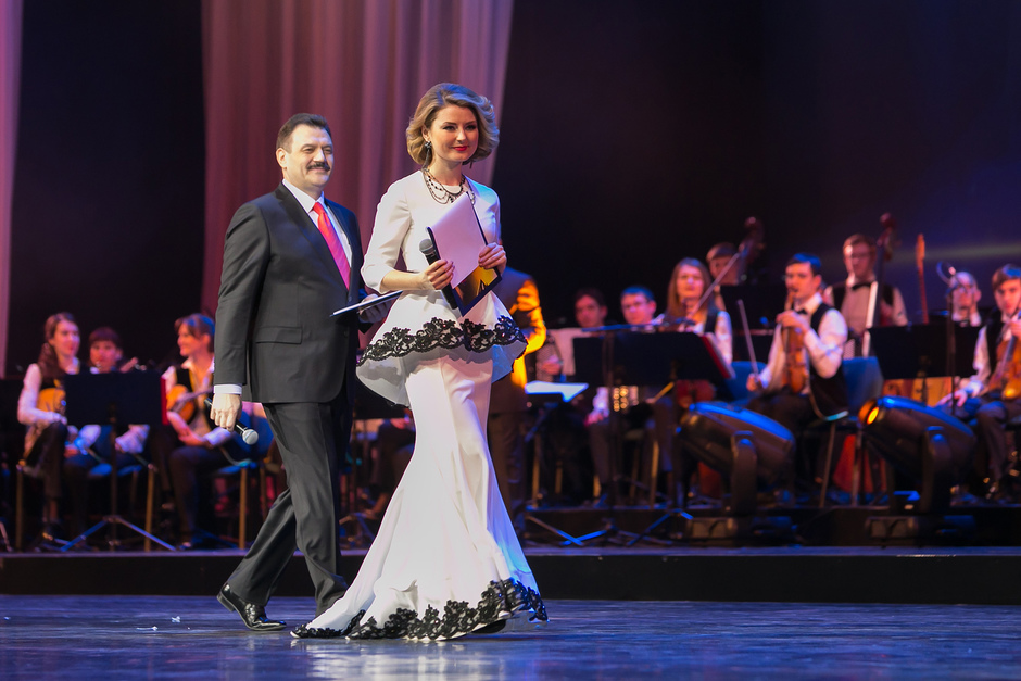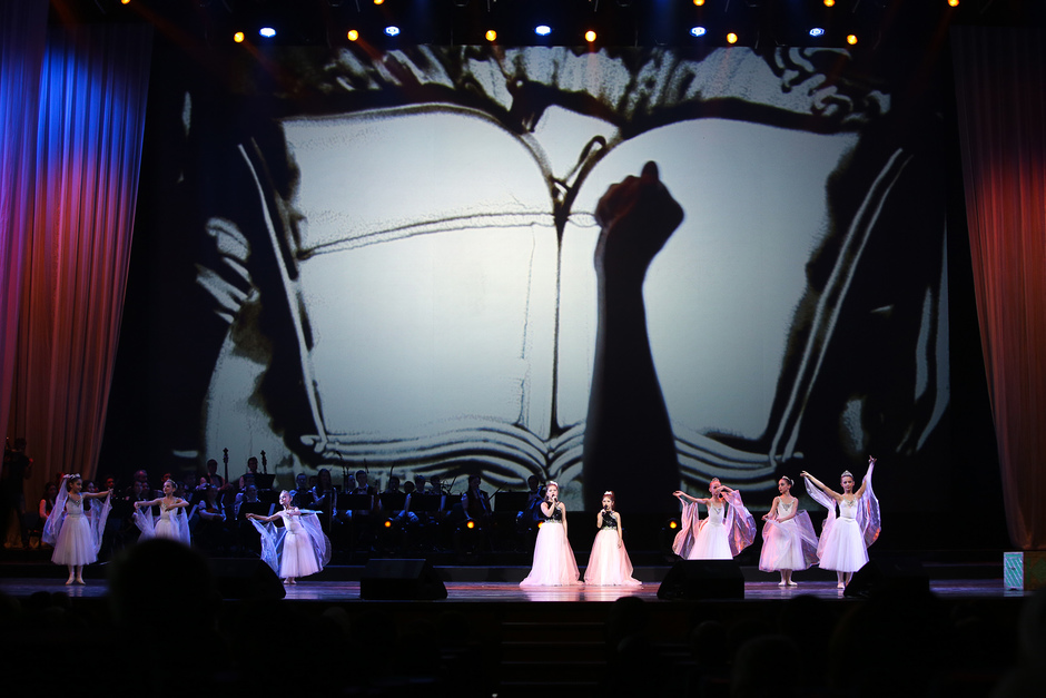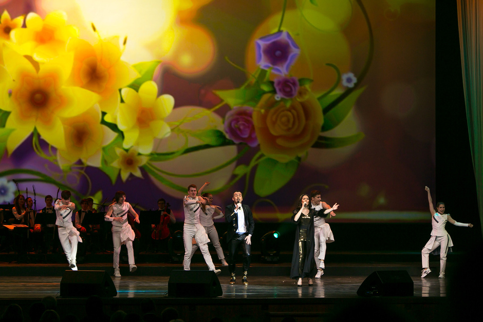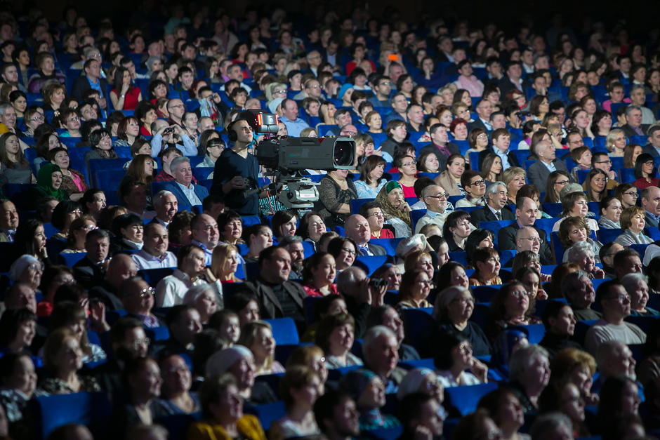Остальные артисты поднялись на сцену прямо из зала, где их уже ждали ведущие канала ТНВ Венера Иванова и Ильдар Киямов. Всего вместе с хором Tatarica и членами танцевальных ансамблей участие приняли почти 300 артистов.