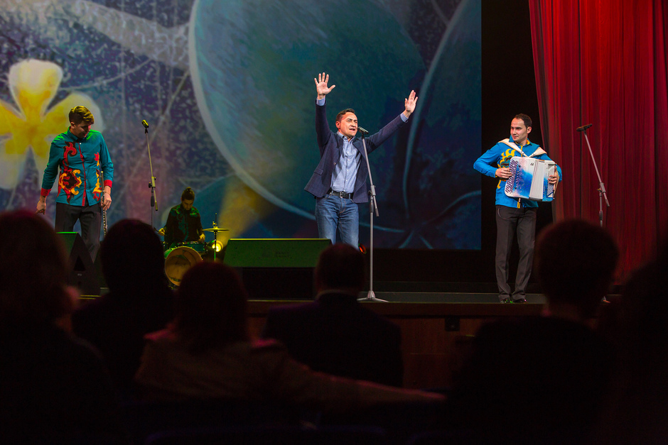 Если первую песню ребята исполняли одни, то композицию «Тала-тала» им посчастливилось спеть с актером Камилем Лариным. Напомним, что Ларин является участником известного «Квартета И». Российский зритель хорошо знает его по ролям в фильмах «О чем говорят мужчины», «День радио», «День выборов», «День выборов-2», премьера которого прошла не так давно в российских кинотеатрах. Напомним, что актер родился в Волгограде в татарской семье. Он рассказал «Реальному времени», что старается поддерживать национальные традиции и говорить на родном языке.