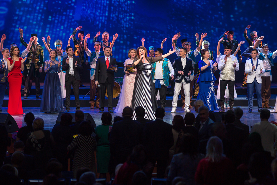 Завершился концерт совместным исполнением композиции «И туган тел», которая уже давно превратилась в неформальный гимн татарского народа.