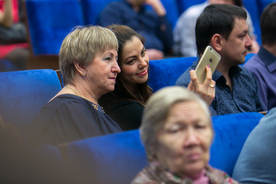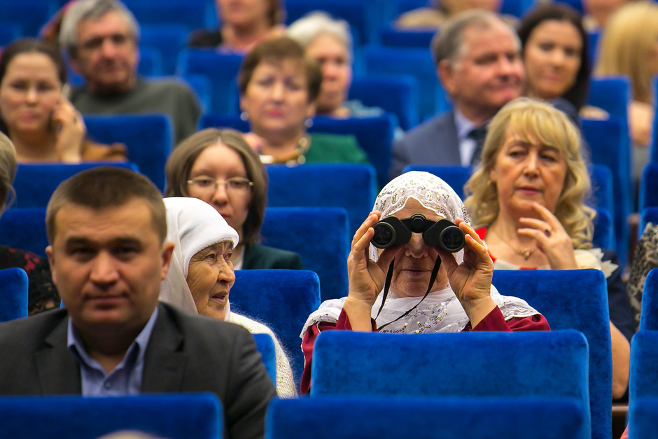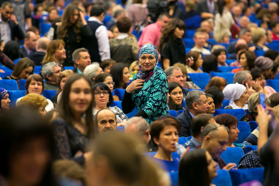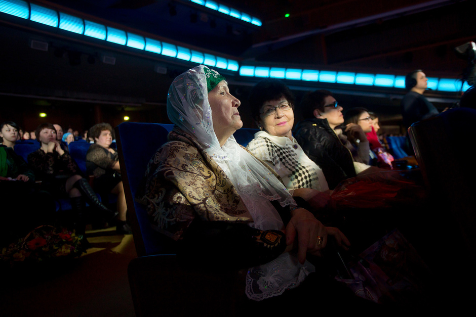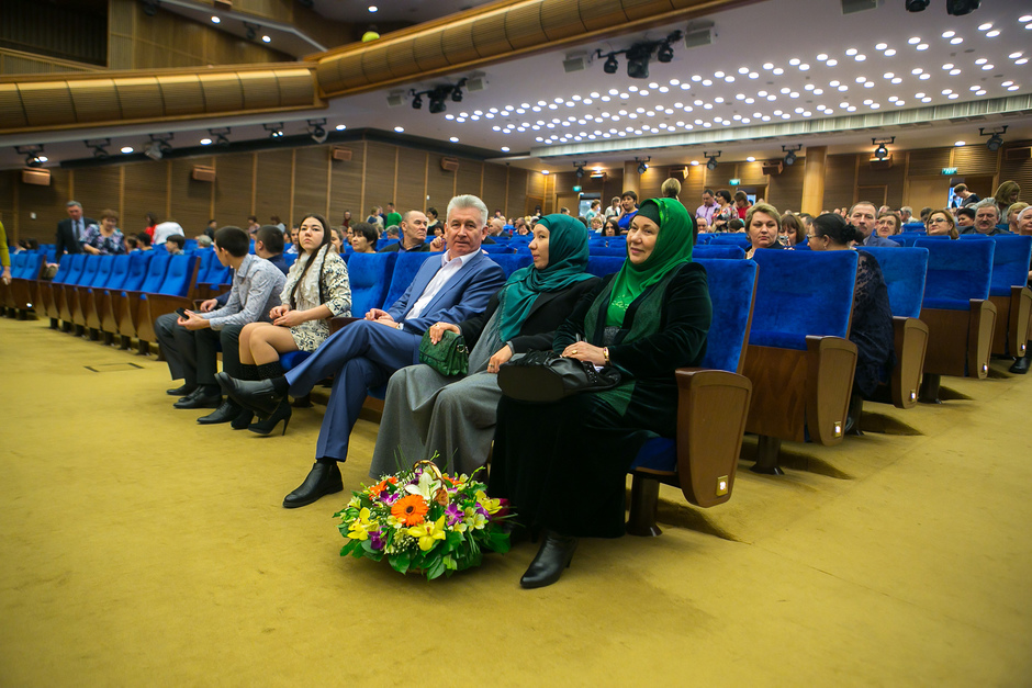 Пожалуй, одним из самых трогательных стал номер Гульсирин Абдуллиной и Азата Абитова, которые исполнили грустную песню о несостоявшейся любви «Безнен гомер». Как оказалось, поддержать Азата Абитова в Москву приехала вся его семья — во время антракта мы встретили мать артиста, Альбину Абитову. «Концерт очень понравился, такое начало, очень много молодых артистов. Мы приехали из Чувашии специально — здесь поет мой сын», — с нескрываемой гордостью рассказала она.