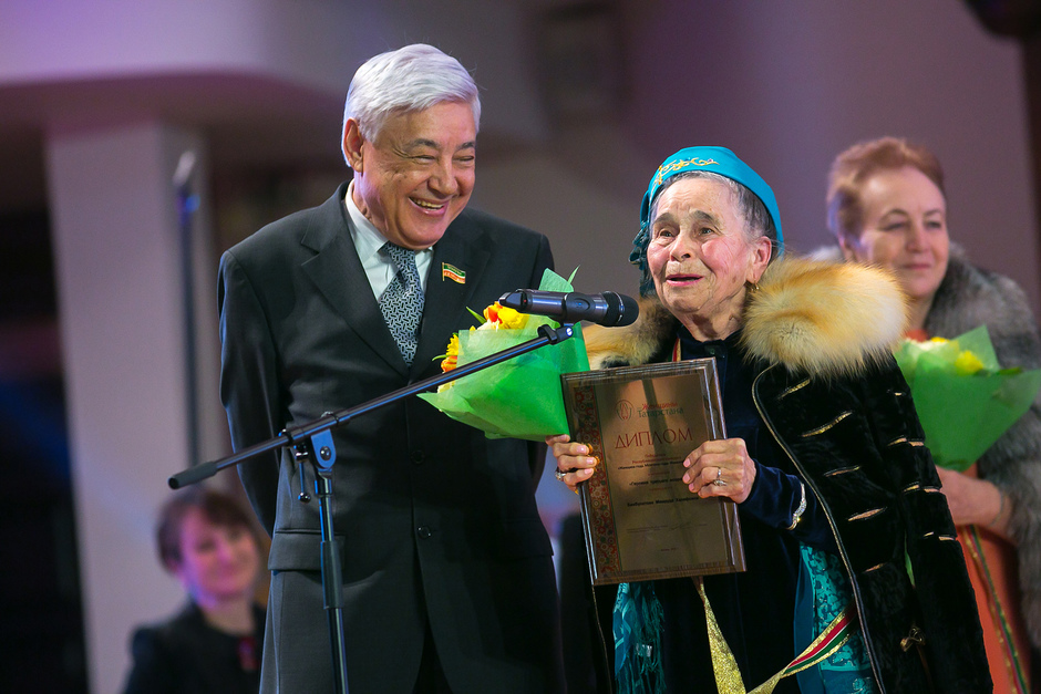Так, в номинации победили заслуженный работник культуры РТ Мария Есипова, пенсионерка Рая Фатхуллина, помощник гендиректора по социальным вопросам ОАО «Радиоприбор» Мавсиля Яруллина и ветеран труда Мамдуда Бикбулатова, которая, кстати, оказалась матерью прокурора РТ Илдуса Нафикова. Само собой, этот факт Мухаметшин не упомянул в числе заслуг женщины. Победительницы получили в подарок цветы и шубы.