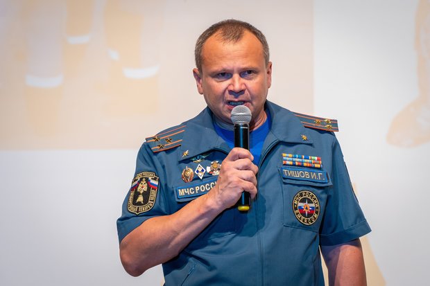 — Если вы увидели пожар на территории лагеря или в здании, не создавайте панику и ни в коем случае не пытайтесь его потушить! Найдите взрослого, который поможет сообщить о пожаре в пожарную охрану, — начал свое выступление Игорь Тишов. — Пожарная безопасность — одна из обязательных составляющих среды, в которой растет и воспитывается ребенок. Поэтому очень важно бережно относиться к своей безопасности и безопасности окружающих. Помните, ваша безопасность — в ваших руках.