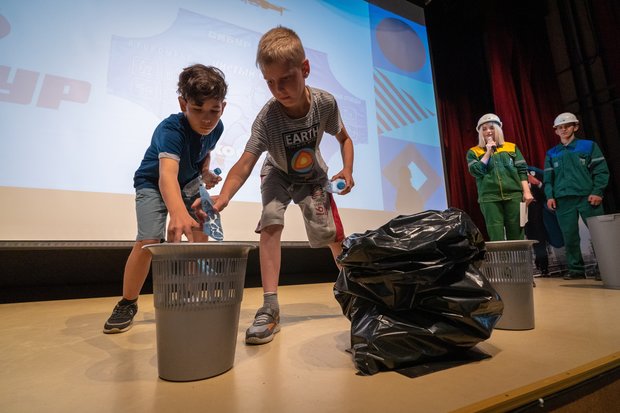— Все мы хотим дышать чистым воздухом, купаться в чистой воде и пить хорошую воду. А для этого необходимо соблюдать экологическую безопасность. В компании СИБУР очень много инициатив и проектов экологической направленности. Холдинг соблюдает все мировые экологические стандарты. Вы знаете, как важно для нашей планеты именно перерабатывать, а не просто выбрасывать мусор. Чтобы мусор отправить на переработку, его сначала надо правильно разделить, — рассказывают о важности сортировки мусора сотрудники КОСа.