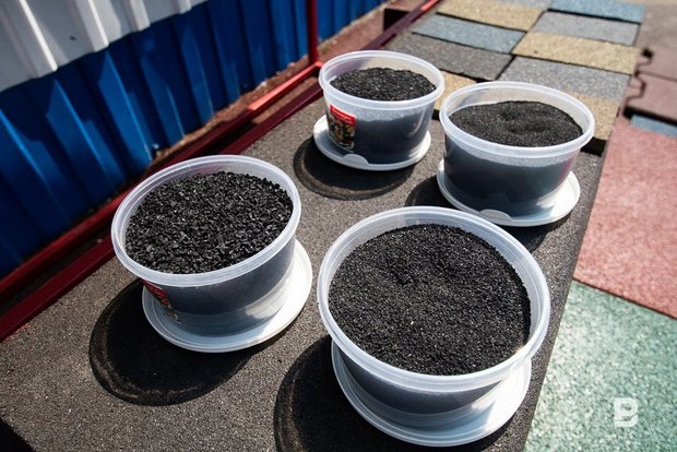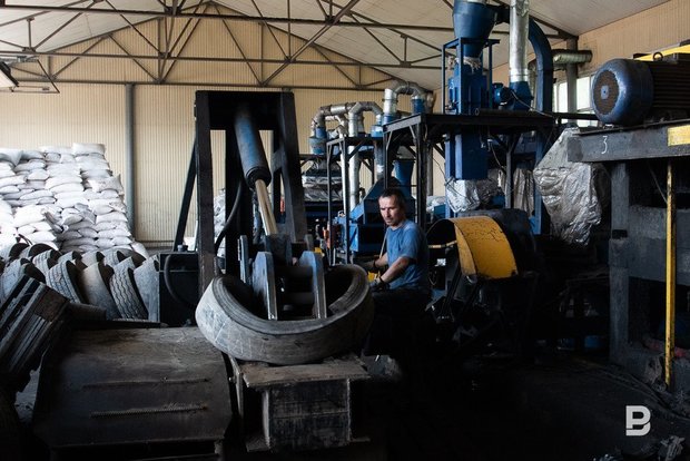 Фирма предоставляет услуги по утилизации старых шин, а попутно производит мягкие наливные резиновые покрытия для открытых и закрытых площадок, резиновую плитку и крошку. realnoevremya.ru/Максим Платонов