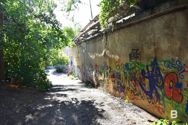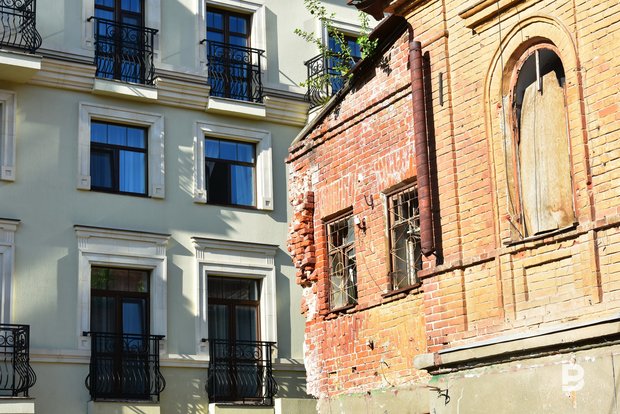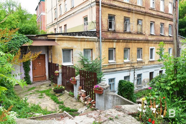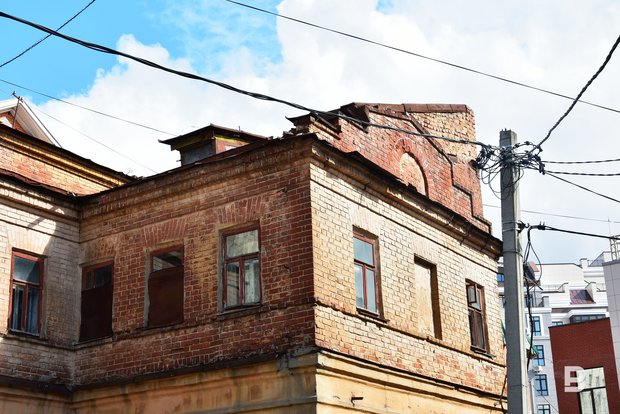 Осматривать дома можно с разных ракурсов. Так, например, поднявшись на балкон у общежития КФУ, можно разглядеть провалившуюся крышу, которая с грохотом раскачивается на сильном ветру.
