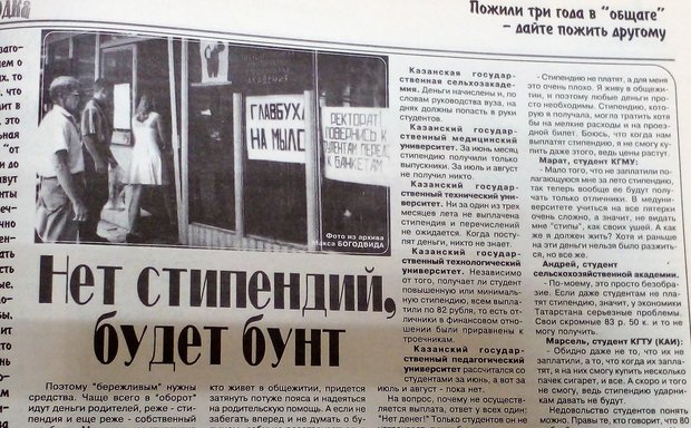 ***** «Молодежь Татарстана», 24 сентября 1998 года. Нет стипендий, будет бунт. Наталья Плеханова.