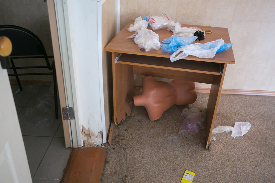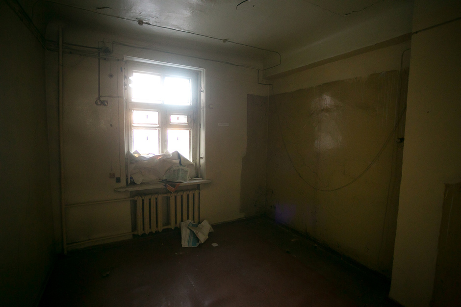 Еще немного дешевле начинающему предпринимателю обойдутся помещения первого этажа в 14-этажном доме на улице Латышских Стрелков, 27 постройки 1980 года. 87,2 кв. м недвижимости будут стоить всего 258,5 тыс. рублей в год — аренда предлагается, как и положено, на пять лет. Две просторные комнаты: стены одной из них щедро выкрашены густой розовой краской и украшены тремя люстрами (в некоторых из них даже есть все плафоны), стены другой — нежно-салатовые. В комнате даже есть диван. Потеки на потолке совсем небольшие.