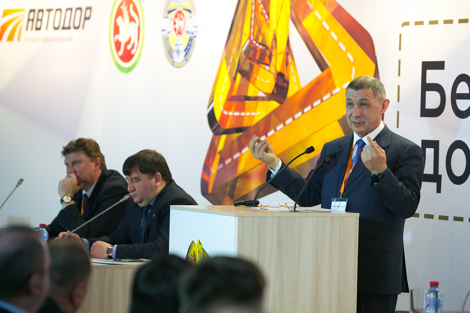 В эти дни в Казани проходит межрегиональная конференция «Безопасная дорога. Проектирование, строительство, эксплуатация и сервис», организованная государственной компанией «Автодор» по следам всероссийского Госсовета, на котором Владимир Путин ребром поставил вопрос о безопасности движения в свете огромных цифр смертности на дорогах. Побывавший на мероприятии корреспондент «Реального времени» наблюдал, как Рифкат Минниханов лоббировал чипизацию автотранспорта и сохранение за регионами права собирать штрафы, а Ленар Сафин в условиях сокращения затрат на безопасность заявил о готовности Татарстана стать полигоном для испытания новых решений, повышающих сохранность водителей и пешеходов.