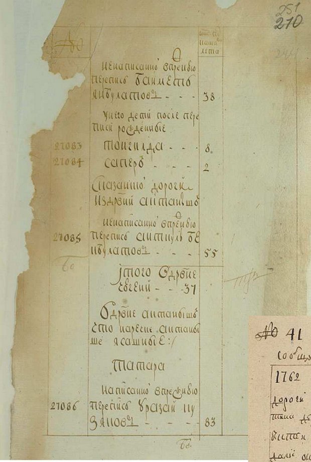 Фрагмент переписной книги 1747 г. дер. Актаныш (РГАДА. Ф.350. Оп.2. Ч.2. Д.3793. Л.251) использована realnoevremya.ru иллюстрация из книги «Татарские селения Восточного Закамья»