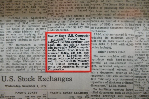 Проходила сделка по покупке компьютера в обстановке секретности. В СССР было решено не освещать это событие вообще, а на Западе информация была, но минимальная. The New York Times от 2 ноября 1972 года сообщила, что американцы через финских посредников продали «Барроуз» советским нефтяникам за $2,3 млн, по нынешним меркам этот компьютер стоил бы 17—18 млн долларов.