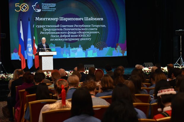 Сегодня в Казани завершился Международный форум к 50-летию Конвенции об охране Всемирного культурного и природного наследия, собравший в столице республики специалистов ЮНЕСКО из 56 стран мира. На протяжении пяти дней эксперты обсуждали вопросы сохранения, защиты и восстановления достопримечательностей, имеющих общечеловеческую ценность. Подводя итоги встречи, в заключительный день форума выступили спикеры из Сирии, Иордании, России, в частности Татарстана. В их числе и первый президент республики, Государственный Советник Татарстана, председатель попечительского совета фонда «Возрождение», посол доброй воли ЮНЕСКО Минтимер Шаймиев. «Реальное время» приводит полную стенограмму его выступления.