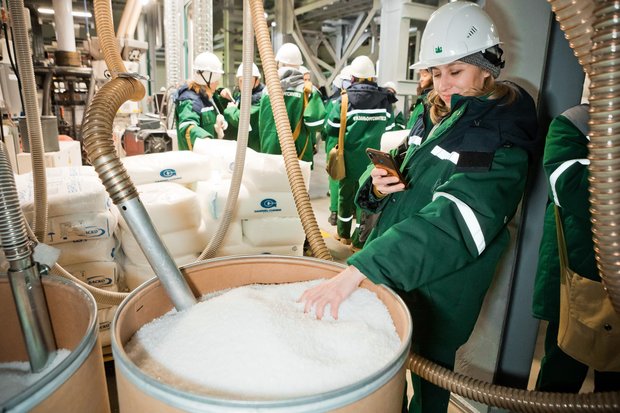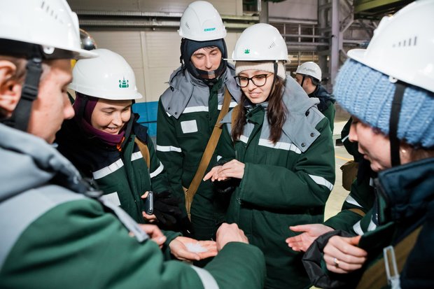 Экскурсия предполагала обзорную поездку на автобусе по всей территории завода с посещением двух цехов — цеха готовой продукции завода поликарбонатов и цеха по производству рукавной FFS-пленки завода по производству и переработке полиэтилена низкого давления, где участники смогли увидеть и даже потрогать основную продукцию, производимую «Казаньоргсинтезом», — гранулы полиэтилена.