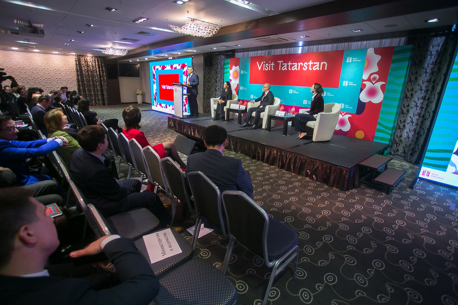 Второе направление — работа с туротраслью. «Развитие туристской отрасли критично важно для привлечения и освоения туристов в Татарстан», — говорит Саргина. Именно ее представители в большинстве своем и были приглашены на презентацию программы. Среди них были авиакомпании, турагентства, рестораторы и отельеры, производители сувениров и пр. Им власти предлагают объединиться под единым брендом Visit Tatarstan. Для этого разработаны специальные логотипы, шрифты, ключевые цвета, которые могут быть нанесены куда угодно: на одежду, чехлы на телефон, на чемодан, на посуду, на сувенирную продукцию. На слайдах презентации были представлены даже мужские носки со стилизованным татарским орнаментом.