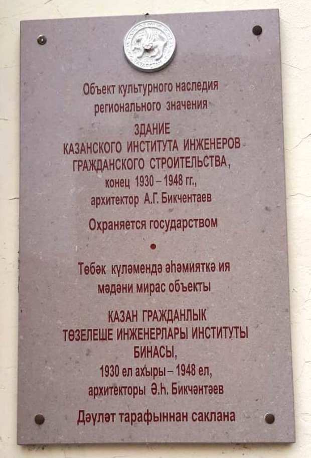 В этом году зданию Института инженеров гражданского строительства КГАСУ исполнится 75 лет. За эти годы строение по ул. Зеленой, 1 не раз перестраивали, оно прирастало новыми корпусами, менялась и его внутренняя планировка. Сегодня трехэтажное строение общей площадью 5,4 тыс. кв. метров является учебно-административным корпусом. Два года назад здание, построенное по проекту выпускника вуза, архитектора и первого татарского профессора архитектуры Ахмеда Бикчентаева, включили в реестр объектов культурного наследия регионального значения, еще год спустя было принято решение о его реконструкции.