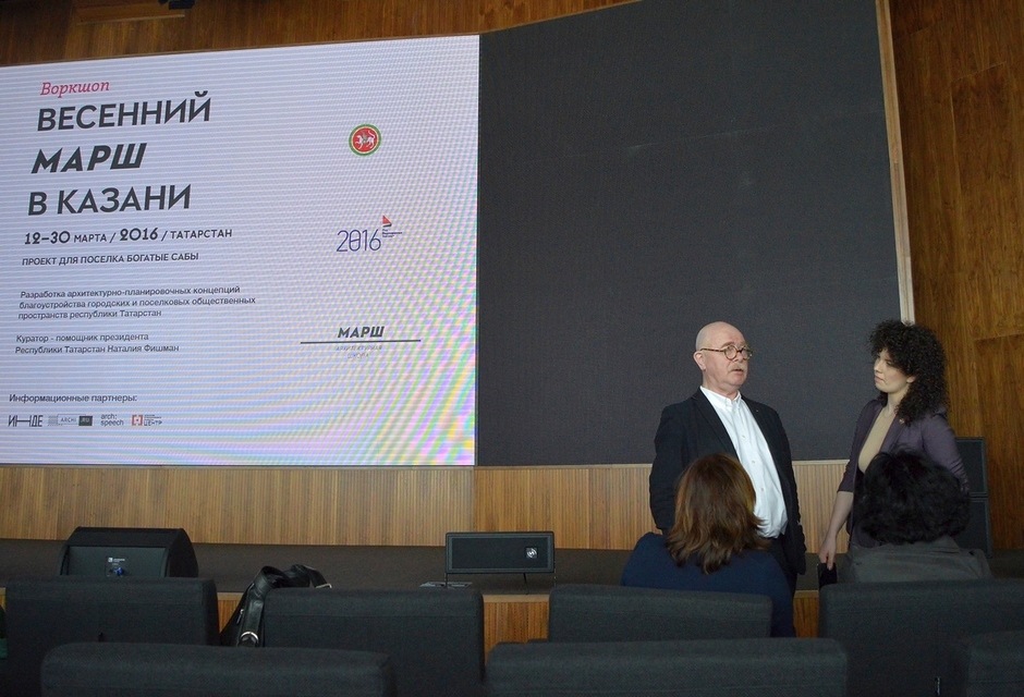 «Я, действительно, Евгений Асс, хотя по казанскому телевидению был представлен как Александр. Еще диктор казанского телевидения сказал, что не любит слово «воркшоп», а мы любим. На самом деле, это означает «мастерская», — начал ректор архитектурной школы МАРШ. К презентациям перешли после его благодарности руководству республики, краткой справки о воркшопе и о своем учебном заведении.