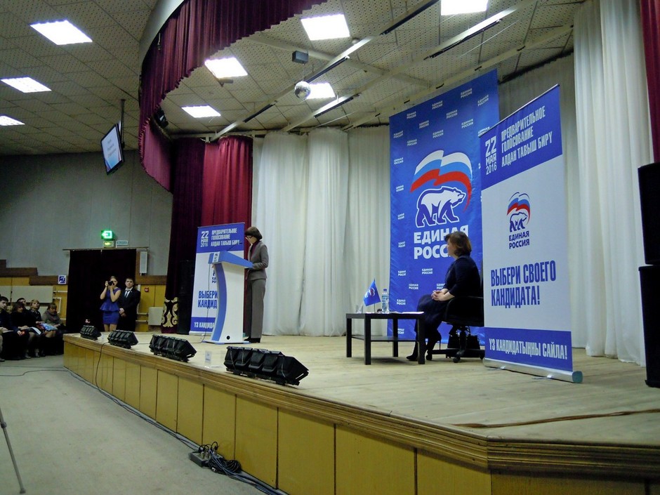 В Доме дружбы народов «Родник» стартовала предвыборная кампания «Единой России» в Госдуму РФ, традиционно им предшествуют праймериз, то есть предварительные внутрипартийные выборы, которые должны пройти 22 мая. Вчера прошла встреча челнинских избирателей с потенциальными кандидатами в депутаты от «Единой России», формально конкурирующими между собой, — пришло немного людей, порядка 200-300 челнинцев. Перед ними со сцены, с трибуны, выступило четыре единороссовских кандидата в депутаты ГД, двое из которых — действующие депутаты ГД Альфия Когогина (от челнинского избирательного округа) и Александр Сидякин (прибывший, так сказать, за компанию), а двое — потенциальные депутаты, доселе в политической жизни не участвовавшие: Людмила Каня и Артем Латыпов. Причем формально оба к моменту начала праймериз числились временно безработными (как выяснилось позднее, для Кани статус безработной был неслучаен: на нем она выстроила свою предвыборную программу). Модератором встречи и выступлений кандидатов выступила депутат Госсовета РТ Светлана Захарова. Захарова заметила, что выдвигаться на праймериз ЕР может кто угодно, хоть непартийный: «Главное, чтобы он не состоял в другой политической партии».