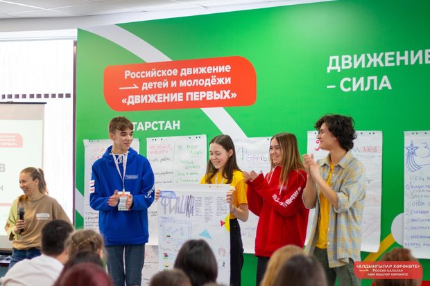 «Движение Первых» — это российское движение детей и молодежи, созданное по инициативе участницы конкурса «Большая перемена» Дианы Красовской и одобренное президентом РФ Владимиром Путиным. Его задача — объединение на добровольной основе детей, молодежи, их родителей, бабушек и дедушек, педагогов. Движение дает возможности найти друзей по интересам, участвовать в мероприятиях и организовывать свои, запускать проекты по 12 направлениям. Это образование, наука, труд и профессия, культура, добровольчество, патриотизм, спорт, здоровый образ жизни, медиа и коммуникации, дипломатия, экология, туризм. А также по 13-му, которое запускается именно в Татарстане — «Родной язык, национальная культура, традиции».