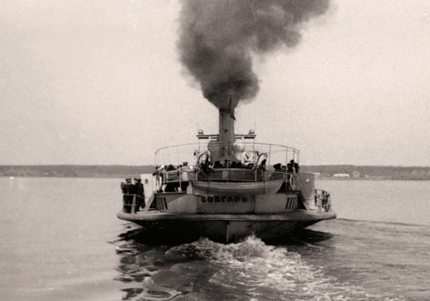 На снимке А. Бренинга можно увидеть, как выглядел паром-предшественник. Указана дата съемки — октябрь 1911 года. Через полгода появится «Волгарь», можно предполагать, что этот маленький буксир уйдет на покой.