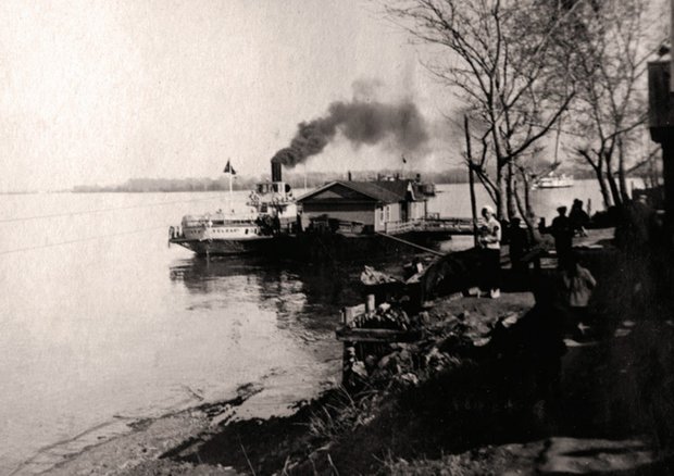Паром «Волгарь» подходит к пристани в Верхнем Услоне, 1939 год